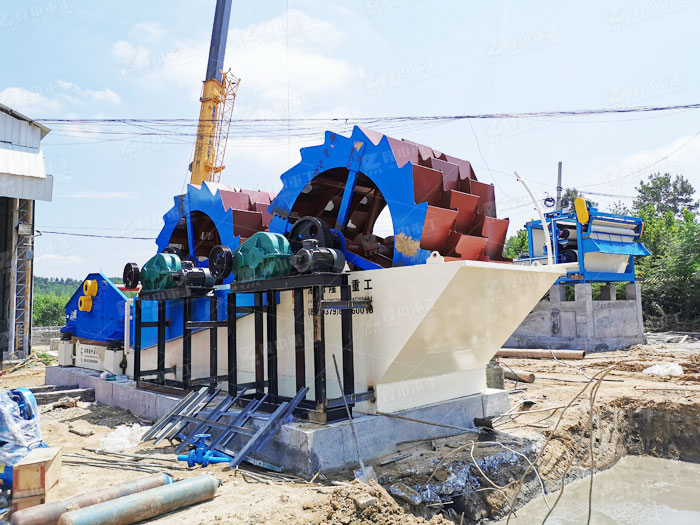 二:水洗砂——篩分后物料再輸送至葉輪洗砂機進行水洗砂;