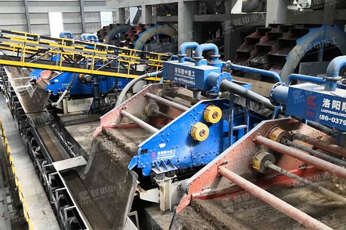 由旋流器上方溢出的泥水混合物,含有大量的泥粉和雜物,其中還含有一些未回收的細小物料;亓蟼}的初始處理可將泥粉、雜物和廢水排出,而將細沙進行初始處理,返回清潔槽多次回收,既可達到較高的回收能力,又可對物料進行初始分選,將廢料排出使生產(chǎn)效益更大。
