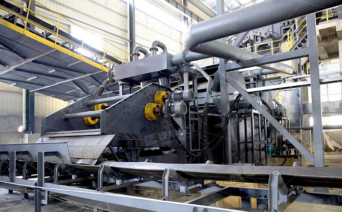 1、細沙回收機用在洗沙機后端,入料口連接洗沙機的出料口。 洗沙機撈出的粗砂直接排入細沙回收半體機的篩面,通過篩機設(shè)計的負傾角爬坡結(jié)構(gòu),物料在篩面上高頻振動形成濾層并脫水,從而實現(xiàn)粗砂脫水功能。